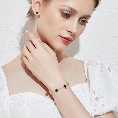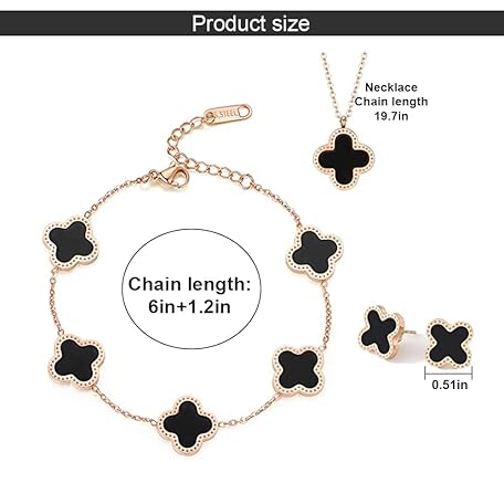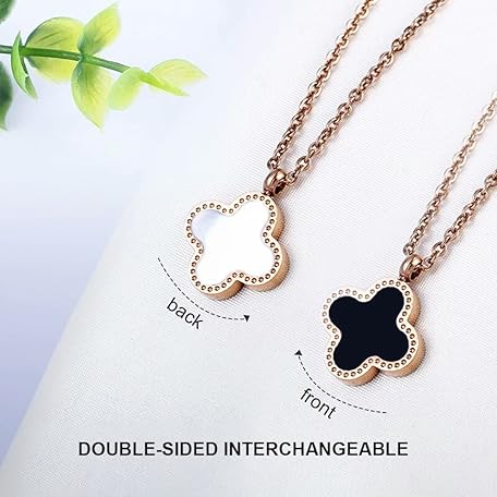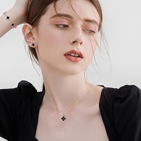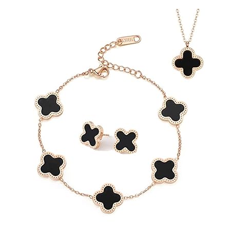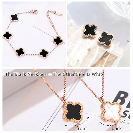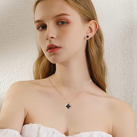 Sản phẩm TOFBS Vierblättriges Kleeblatt Schmuckset für Damen und Mädchen 18K Roségold Plattiert Edelstahl Zweiseitig Weiß Schwarz Anhänger Halskette Ohrstecker Armband Emaille Schmuck Set đang được bán với giá ưu đãi là $16.4372 tại nước Đức.
