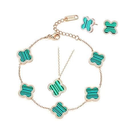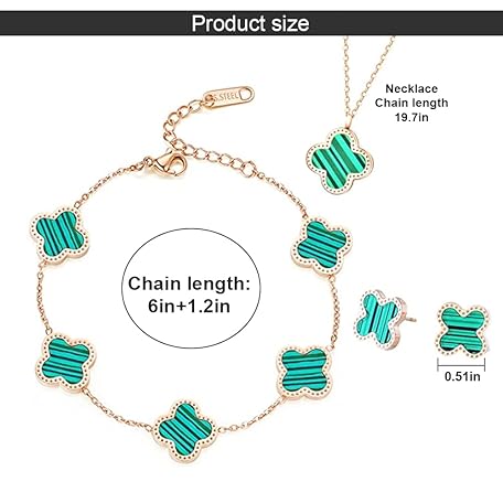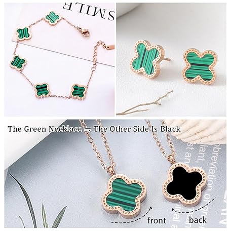 Sản phẩm TOFBS Vierblättriges Kleeblatt Schmuckset für Damen und Mädchen 18K Roségold Plattiert Edelstahl Zweiseitig Weiß Schwarz Anhänger Halskette Ohrstecker Armband Emaille Schmuck Set đang được bán với giá ưu đãi là $16.5571 tại nước Đức.