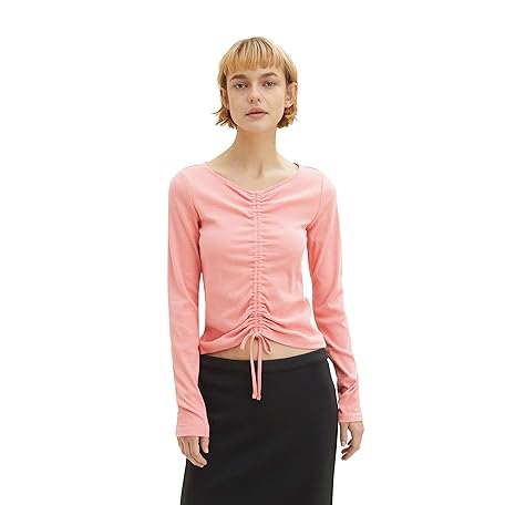 TOM TAILOR Denim Damen Langarmshirt mit Schnürung 1034833, 15121 - Peach Pink, S