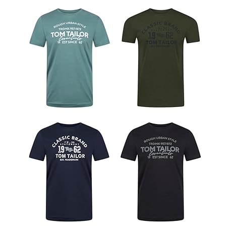 Thương hiệu TOM TAILOR là cái tên nổi tiếng được rất nhiều khách hàng trên thế giới chọn lựa. Với kiểu dáng đẹp mắt, sang trọng, sản phẩm TOM TAILOR Men's Cotton T-Shirt, Regular Fit, Pack of 4, Crew Neck, Short Sleeve, Summer T-Shirt, Logo Print, 100% Cotton, Black, White, Green, Red, Blue, Grey, Orange, S, M, L, XL, XXL, 3XL là sự lựa chọn hoàn hảo nếu bạn đang tìm mua một món cho riêng mình.