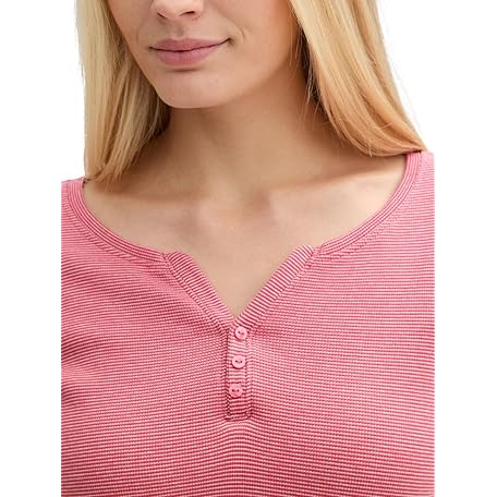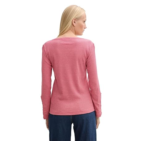 Thông tin sản phẩm TOM TAILOR Women's Henley Long-Sleeved Shirt with Stripes Made of Organic Cotton, 11849 - Doeskin, M