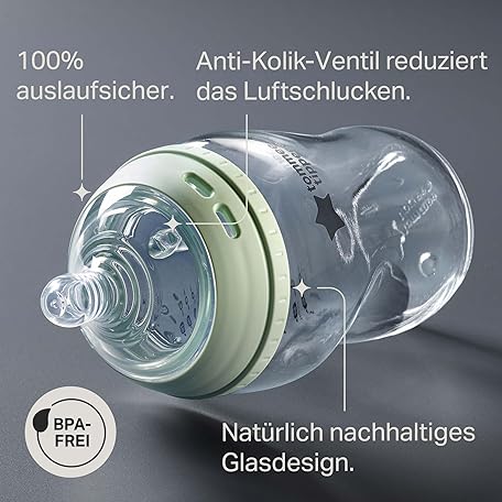 Sản phẩm Tommee Tippee -Baby bottle, Natural Start anti-colic bottle made of glass, 250 ml, breast-like teat, anti-colic valve, self-sterile, accessories, pack of 1 đang được bán với giá ưu đãi là $16.4917 tại nước Đức.