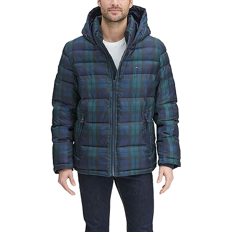• Tommy Hilfiger Herren Hooded Puffer Jacket Daunenalternativer Mantel, Black Watch Plaid, XXL