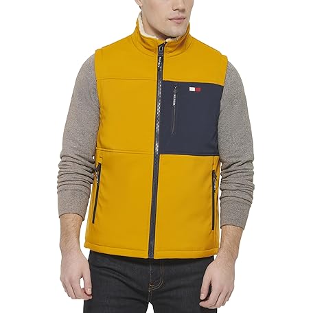 • Tommy Hilfiger Herren Sherpa Lined Vest Weste, Gelb, Marineblau, Mehrfarbig, S