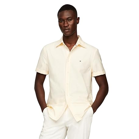 • Tommy Hilfiger Kurzärmeliges Oxford-Hemd mit normaler Passform für Herren mit Knopfleiste, Citronella / Optic White, L