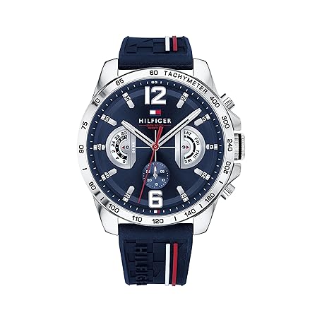 Tommy Hilfiger Mens Multifunction Quartz Movement and Navy Blue Leather Strap, Strap.