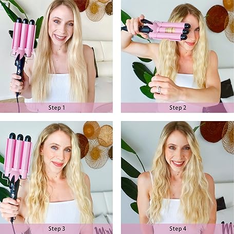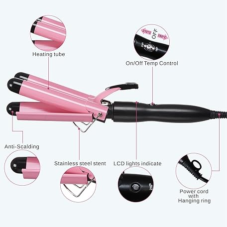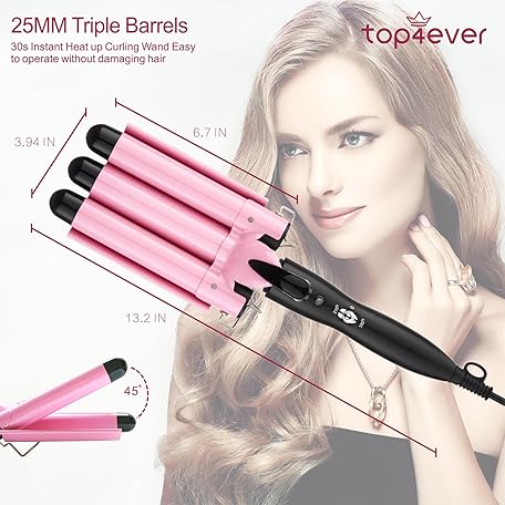 Thông tin sản phẩm Top4ever Curling Iron, 3-Barrel Hair Styling Tool with Adjustable Temperature, Fast Heating, Large Waves for Thick, Long and Short Hair, 25 mm