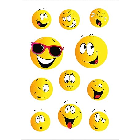 Thông tin sản phẩm TopStick 1341 Smiley Stickers, Small, Large, 55 Pieces, Reward Stickers with Funny Emoji Face Motif, Children's Labels for School, Primary School, Students, Diary, Scrapbooking, Birthday Decoration,