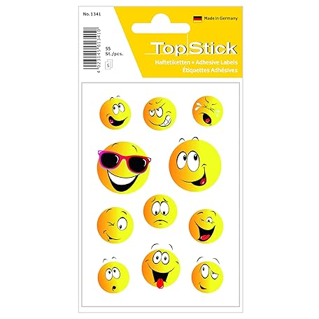 Sản phẩm TopStick 1341 Smiley Stickers, Small, Large, 55 Pieces, Reward Stickers with Funny Emoji Face Motif, Children's Labels for School, Primary School, Students, Diary, Scrapbooking, Birthday Decoration, đang được bán với giá ưu đãi là $5.0031 tại nước Đức.