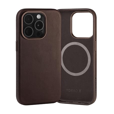 TORRO Leather Case Compatible with iPhone 15 Pro - Genuine Leather Case Slim Bumper Case Compatible with MagSafe (Dark Brown)