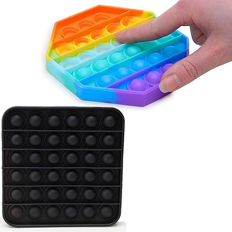 Toyland® Pack of 2 Push Bubble Pop Bubble 'Pop It' Sensory Fidget Toy - Many to Choose From (Rainbow Octagon & Black Square)
