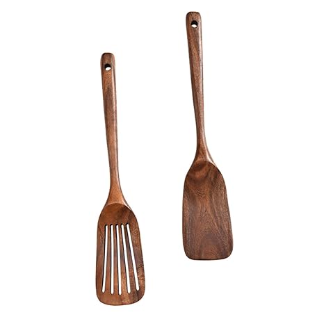 Toyvian 2 Stück Teiliges Holz Pfannenwender aus Geschmacksneutralem Teakholz Hitzebeständig mit Langem Griff für Beschichtete Pfannen und Vielseitiges Kochen Küche