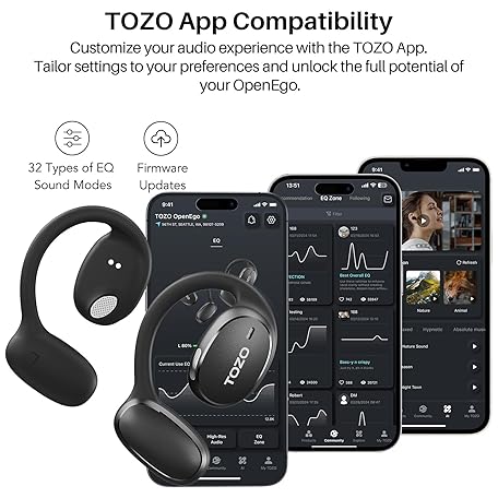 Thông tin sản phẩm TOZO OpenEgo Open Ear Headphones 5.3 Bluetooth Headphones Sport with Ear Hook, Headphones Wireless Bluetooth with LED Display, 80 Hours Playtime, 32 EQ Modes, Call Noise Cancelling Headphones for