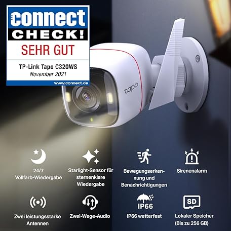 Thông tin sản phẩm TP-Link Tapo C320WS Outdoor Surveillance Camera, WiFi IP Camera, 4MP High Resolution, 30 m Full Colour Night Vision, Motion Detection, IP66 Waterproof, Alarm Message, Two-Way Audio, White, Pack of 1