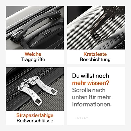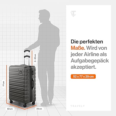 Thông tin sản phẩm Travely Polycarbonat Koffer Groß 77cm XL - 100L Innenvolumen - 158cm Gurtmaß, sehr robuster Hartschalenkoffer mit sanften Rollen & TSA Schloss, Reisekoffer, Handgepäck Koffer, Reisekoffer mit Rollen