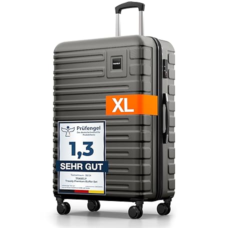 Sản phẩm Travely Polycarbonat Koffer Groß 77cm XL - 100L Innenvolumen - 158cm Gurtmaß, sehr robuster Hartschalenkoffer mit sanften Rollen & TSA Schloss, Reisekoffer, Handgepäck Koffer, Reisekoffer mit Rollen đang được bán với giá ưu đãi là $130.1787 tại nước Đức.