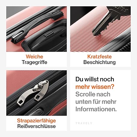 Thông tin sản phẩm Travely Premium Handgepäck Koffer 55x40x20cm - passend für Ryanair, Lufthansa, Eurowings und co. I 36L Handgepäck Koffer mit sanften Rollen und praktischem TSA Schloss, Reisekoffer