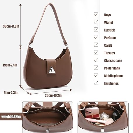 Thông tin sản phẩm Travistar Handbag Women's Small Elegant Shoulder Bag Women's PU Leather Hobo Bag Y2k Bag Saddle Bag Aesthetic Evening Bag Clutch with Zip Cool Shoulder Bag for Teenage Girls, black, S, Utility