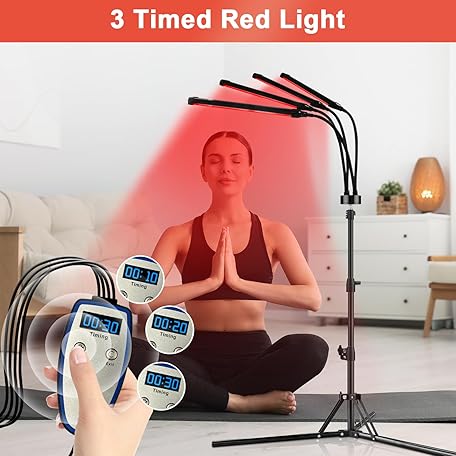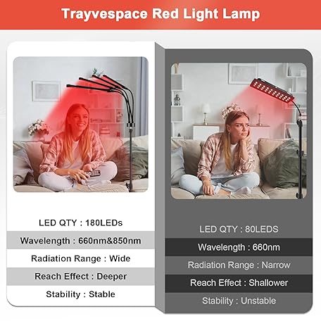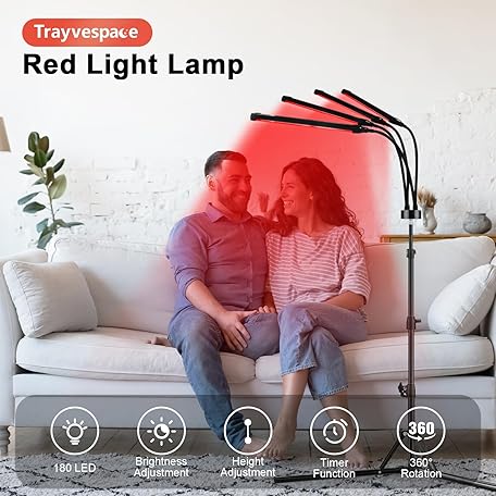 Thông tin sản phẩm Trayvespace Infrared Lamp, 660 nm & 850 nm Red Light Lamp with Stand, Timer, Brightness Adjustable, 360° Rotating Red Light Lamp Face for the Whole Body