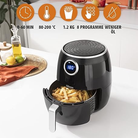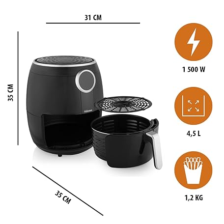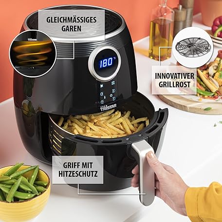 Tristar FR-6956 Heißluft-Fritteuse Cool-Touch-Gehaeuse, Ueberhitzungsschutz, Timerfunktion Schwarz, Digital, 4,5L