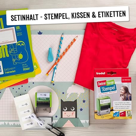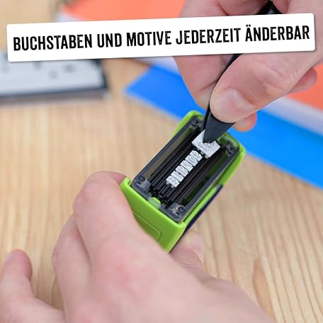 Thông tin sản phẩm Trodat Trodat Deine Dinge Stamp Set to Set Yourself, German Layout, Self-Inking, Machine Washable, 38 x 14 mm, Black Ink.