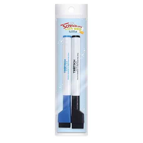 TRÖTSCH - 2er Pack Schreib und wisch weg-Stifte | 2 Abwischbare Stifte mit integriertem Schwamm.: Wegwischbare Stifte mit blauer und schwarzer Tinte, ... | 12,5cm (Schreib und Wisch Weg Lernhefte)