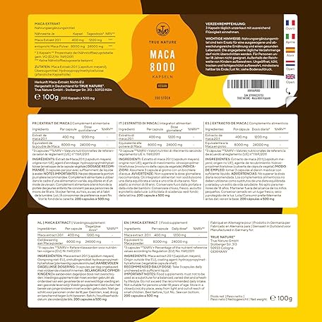 Sản phẩm True Nature® Maca 8000 (extract 20:1) 200 capsules of 400 mg đang được bán với giá ưu đãi là $25.3752 tại nước Đức.