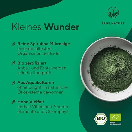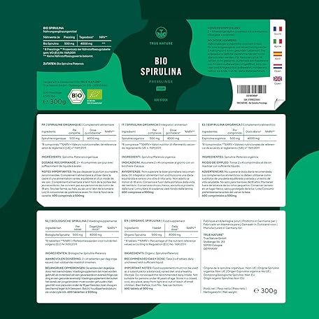 Sản phẩm True Nature® Premium Organic Spirulina Pellets (500 mg x 600 pieces) - 100% Pure Organic Spirulina Algae - Vegan, Multiple Laboratory Tested and Made in Germany đang được bán với giá ưu đãi là $25.3534 tại nước Đức.