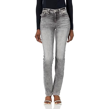 True Religion Damen Bille Mid Rise Straight Super T Flap Jeans, Grau (Graphite//Nature's Delight), 24