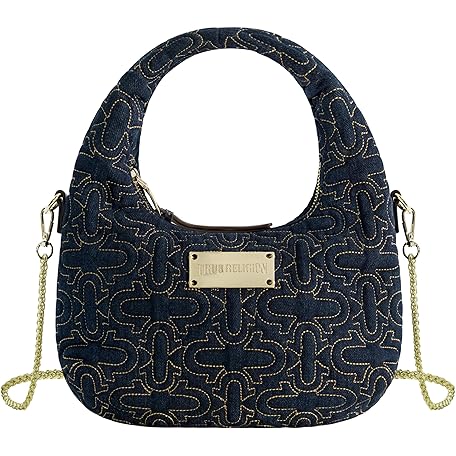 • True Religion Damen Hobo Bag, Women's Quilted Denim Handbag with Adjustable Shoulder Strap Handtasche