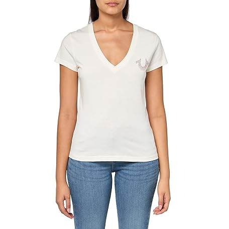True Religion Damen-T-Shirt mit Hufeisen und V-Ausschnitt, Winter-Weiß, X-Groß