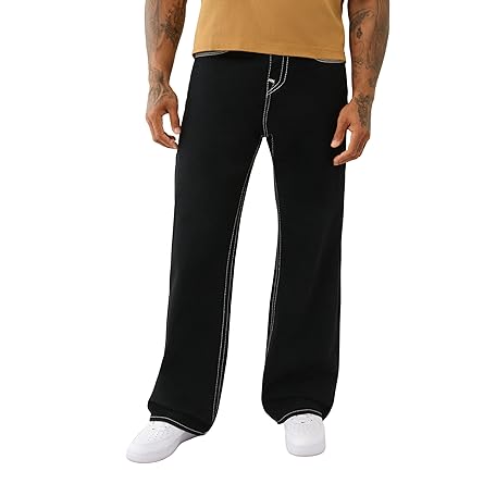 True Religion Herren Super Flatlock Vinny Flap Jeans - Slim Straight Fit Stretch Denim mit kräftigen Nähten & Pattentaschen, Schwarze Spülung, 54