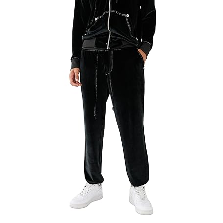 • True Religion Herren Velours Big T Jogger Trainingshose, Schwarz (Jet Black), X-Groß