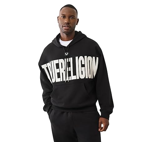 True Religion Men's Knit Panel TR Cinched Hoodie - Pullover Hooded Sweatshirt