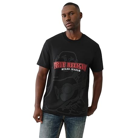 True Religion Men's Short Sleeve Shadow Logo Crew Neck Graphic T-Shirt