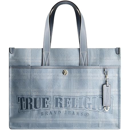 True Religion Tote Bag Women's Striped Denim City Purse Handbag with Adjustable Shoulder Strap