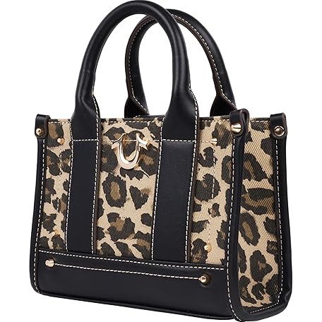 True Religion Unisex Tote Bag, Small Canvas Carryall with Handles and Inner Pocket for Women, Mini Tote Bag, Leopard