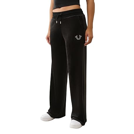 True Religion Women's Crystal HS Velour Straight Leg Tracksuit Bottoms