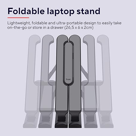 Thông tin sản phẩm Trust Primo Foldable Laptop Stand, 16 Inches, Lightweight Folding Laptop Holder, Height Adjustable in 6 Levels, for MacBook Pro, Notebook, Air, Dell, HP Lenovo Home, Office, Grey