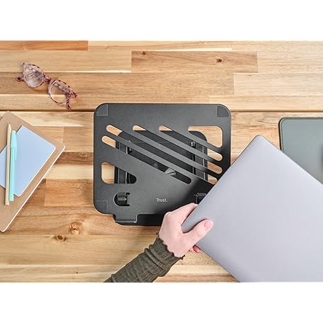 Sản phẩm Trust Zeff Height-Adjustable Laptop Stand for Laptop 16 Inch with 360 Degree Rotation, Foldable Non-Slip Laptop Holder for Lenovo, Macbook, HP, Dell, Desk, Home Office - Black đang được bán với giá ưu đãi là 0 tại nước Đức.
