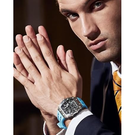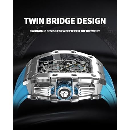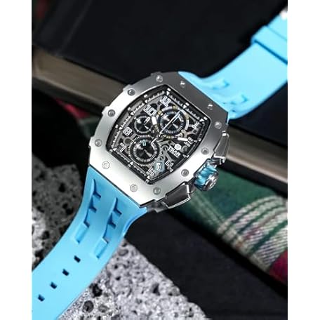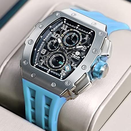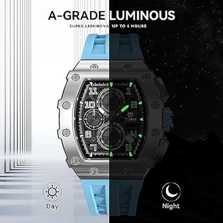 • TSAR BOMBA Men's Watch, Square, Analogue, 50 m Waterproof, Tonneau Chronograph, Unique Sports Watch, Diver’s Watch, Quartz, Stylish Design, Night Watch with Rubber Strap