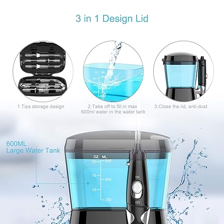 Thông tin sản phẩm TUREWELL Electric Oral Irrigator with 10 Pressure Levels and 8 Nozzles, IPX7 Waterproof Oral Irrigator, 600 ml Water Flosser for Home (Black)