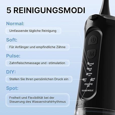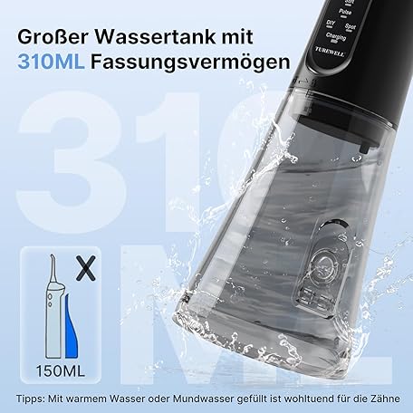Thông tin sản phẩm TUREWELL Wireless Oral Irrigator, Electric Tooth Cleaner with 5 Modes, 4 Nozzles, 310 ml Water Tank & IPX7 Waterproof, Oral Irrigator, Test Winner for Cleaning when Travel, Improving Dental Health