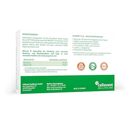 Sản phẩm Turmeric Capsules High Dose by Acurmin Plus - Micellar Curcumin C14 Certified - Piperine Free 4260346850196 60.00 đang được bán với giá ưu đãi là $25.2117 tại nước Đức.