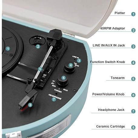 Sản phẩm Turntable with Stereo Built-in Speakers, 3-Speed Vinyl Turntable with Headphone Jack/Aux Input/RCA Line Out (Blue) đang được bán với giá ưu đãi là $119.1479 tại nước Đức.