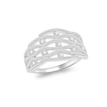 Tuscany Silver Lattice Wave Women's Ring Rhodium-Plated Sterling Silver Cubic Zirconia