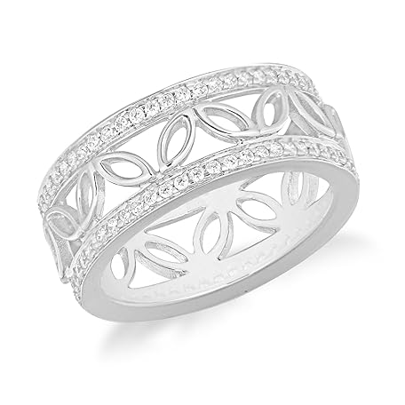 Tuscany Silver Women's Ring Sterling Silver White Cubic Zirconia Filigree Band - Size P, Silver, Cubic Zirconia