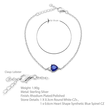 Sản phẩm Tuscany Silver Women's Sterling Silver Rhodium Plated 6mm Heart Shape Synthetic Blue Spinel with 3mm Round White CZ Adjustable Bracelet 16cm/6.25" -19cm/7.5" đang được bán với giá ưu đãi là $47.96 tại nước Đức.