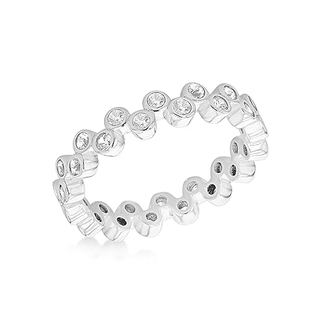 Tuscany Silver Women's Sterling Silver Rhodium Plated Eternity CZ Band Ring #Q