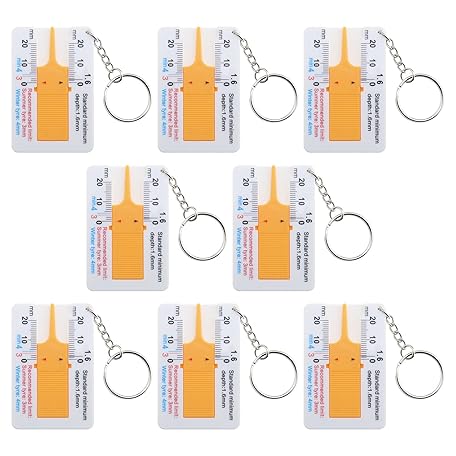 Tyre Tread Depth Gauge 0-20 mm Tyre Ruler Portable Tyre Tread Checker with Keychain for Car Motorcycle Truck Caravan Trailer Wheel Plastic Measurement Tool Pack of 8